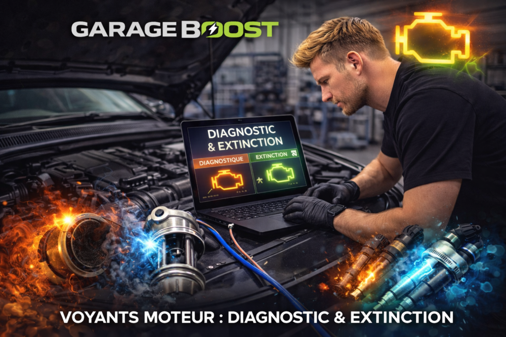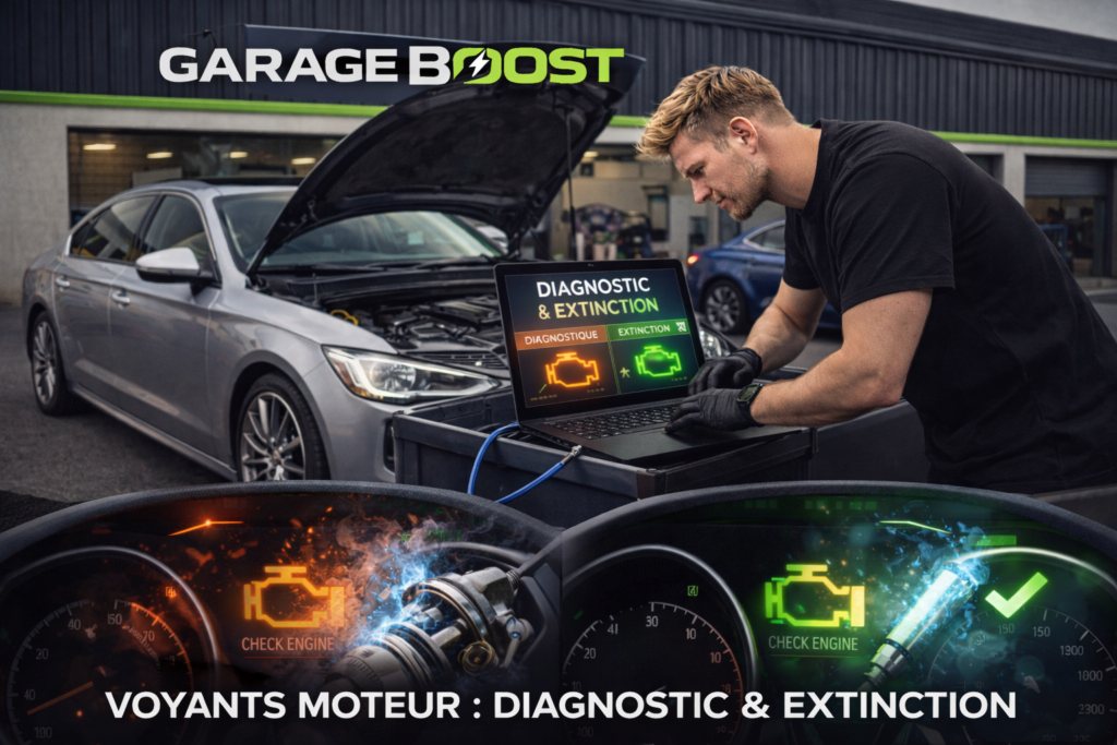 GarageBoost propose le diagnostic voyant allumé, l’extinction témoin, l’analyse électronique et la réparation pannes moteur pour tous véhicules.